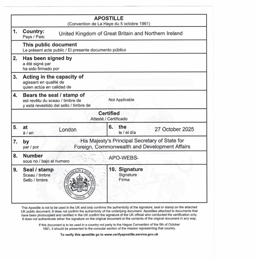 A UK Apostille Stamp is used outside of the UK, it certifies the signature on your document is authentic. This Stamp is usually needed by people who are travelling for work or for studying outside the country or your company is undertaking a contract or set up an establishment overseas. Most if not all organisations will require that an apostille certificate be presented for the documents to be accepted.